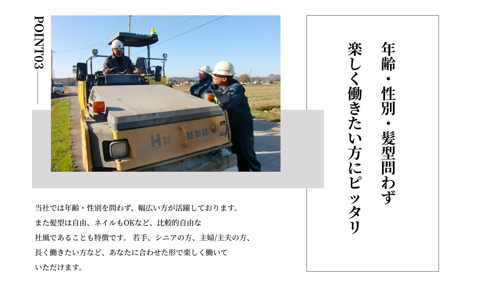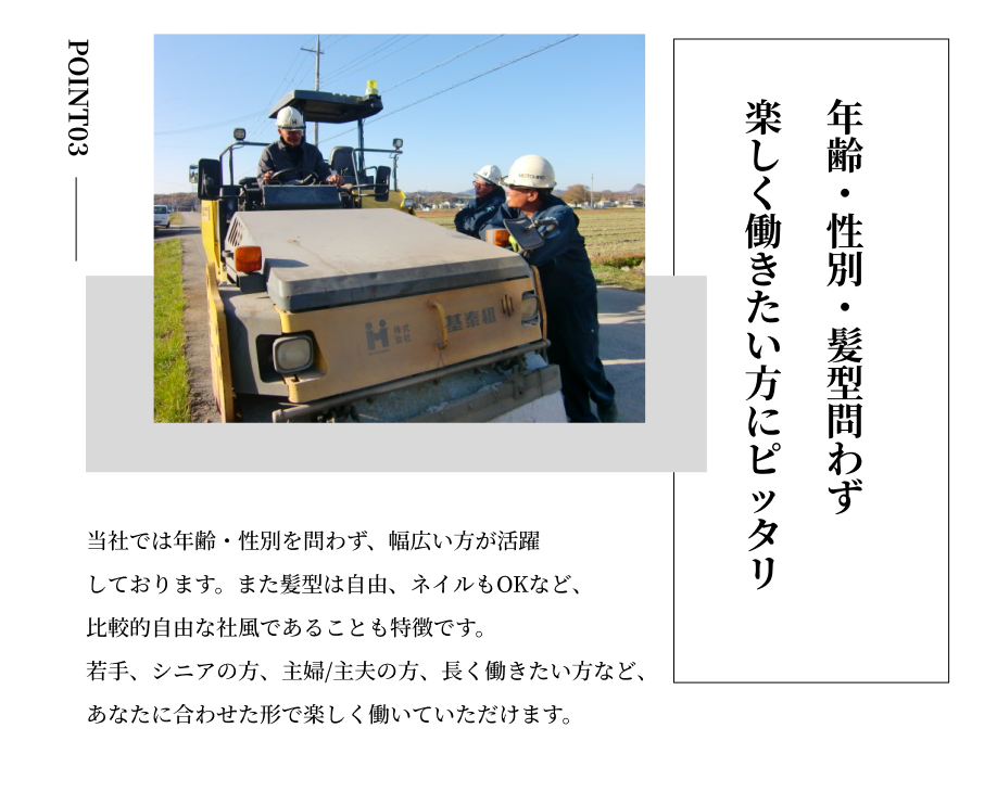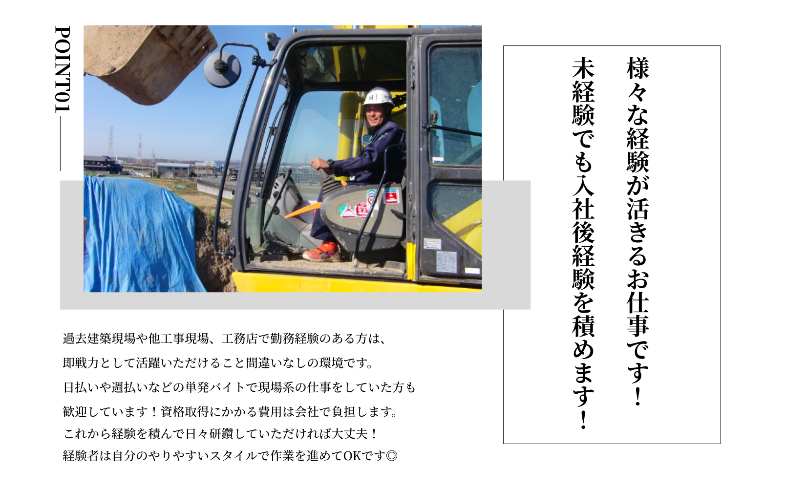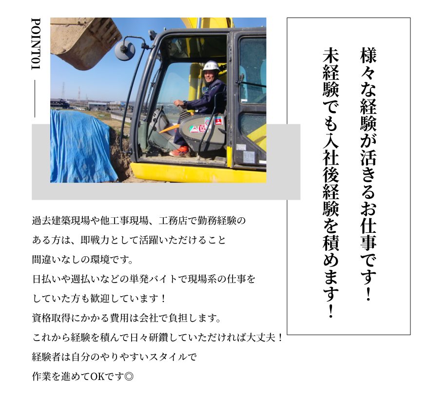1968年創業の建設工事ノウハウとベテランスタッフによる指導で確実にスキルを上げていけます。